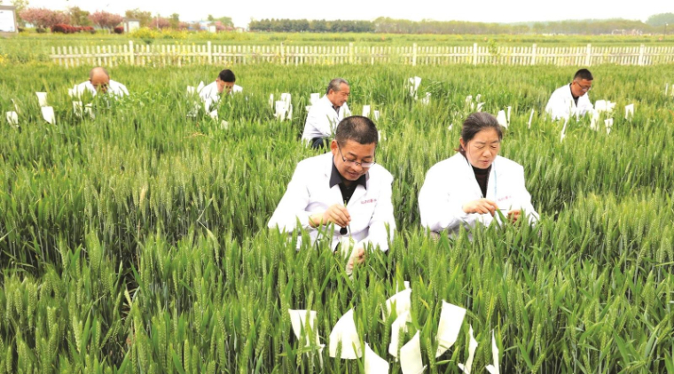 安徽省农垦集团龙亢农场公司皖北科技创新中心专家在蚌埠进行小麦杂交实验。