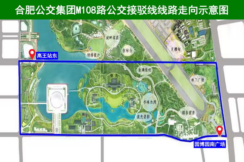 11月2日,合肥公交发布消息,为服务合肥市民和外地来宾乘坐地铁1号线出高王站后,就近换乘公交接驳线路前往园博园观光休闲,合肥公交集团自2023年11月4日起新开M108路公交接驳线。