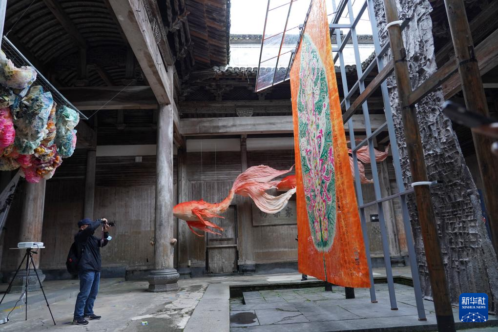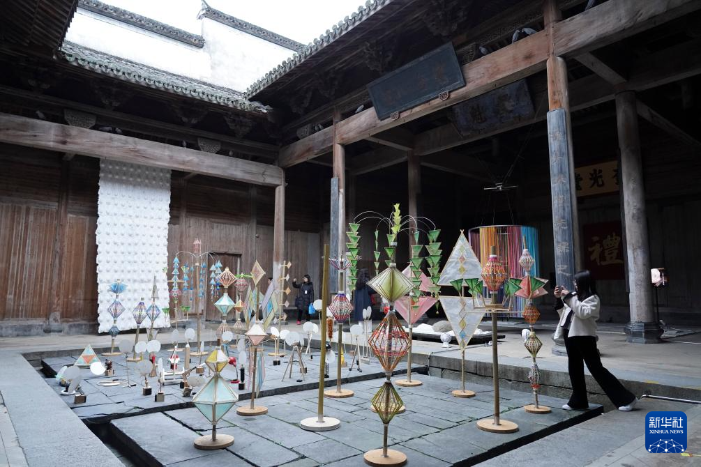 当日,“文化之美·纸上空间”安徽纸工艺项目年度成果展在安徽省黄山市黟县南屏村开幕。31件/套以“纸”为主题的艺术作品在徽派祠堂建筑叶氏宗祠和叶氏支祠中亮相,旨在“从艺术的角度发现纸”,并探索非遗技艺的展陈新方式和非遗技艺的在地艺术建构功能。新华社记者 陈钟昊 摄