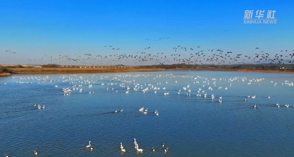 近日,安徽省池州市贵池区迎来大批候鸟栖息越冬。