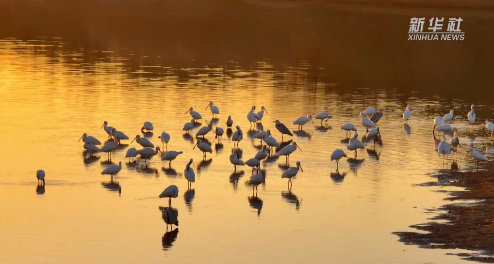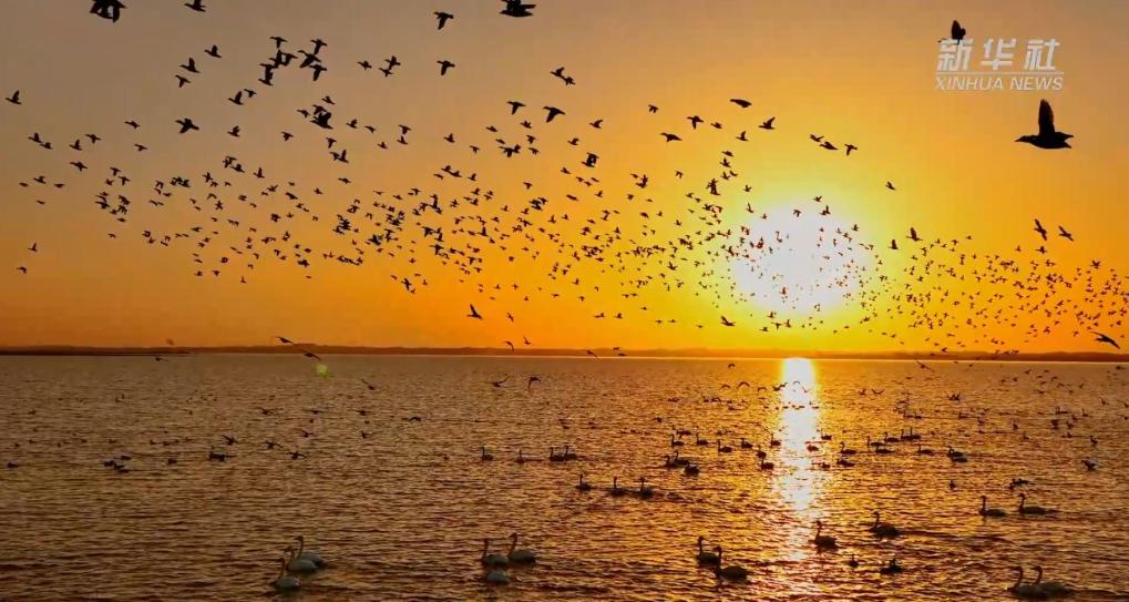 十八索自然保护区、杏花村文化旅游区里,成群的候鸟沐浴在落日余晖中。候鸟们或驻足嬉戏,或展翅翱翔,剪影在光影里翩跹,宛若一幅浓墨重彩的油画。