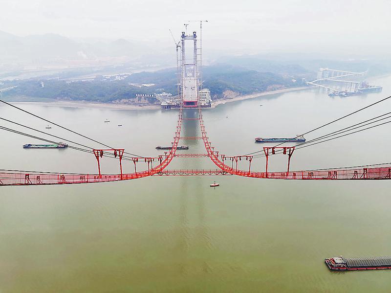 12月4日,由铜陵市交投集团投资建设,中铁大桥院设计、中铁大桥局承建的世界首座双层斜拉-悬索协作体系大桥——G3铜陵长江公铁大桥首根主缆索股架设完成,大桥正式进入主缆架设施工阶段。