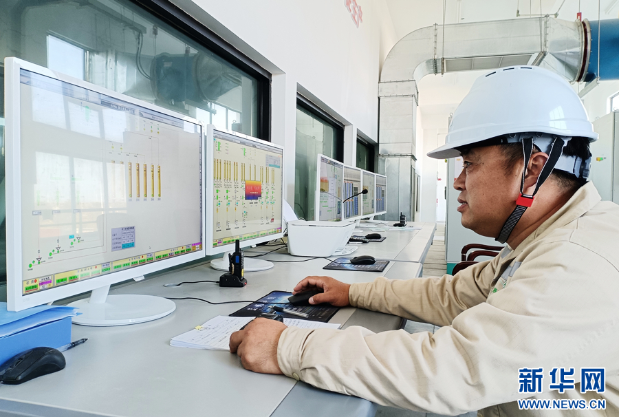 安徽雁湖面粉有限公司工作人员操作自动化控制系统。新华网李东标 摄