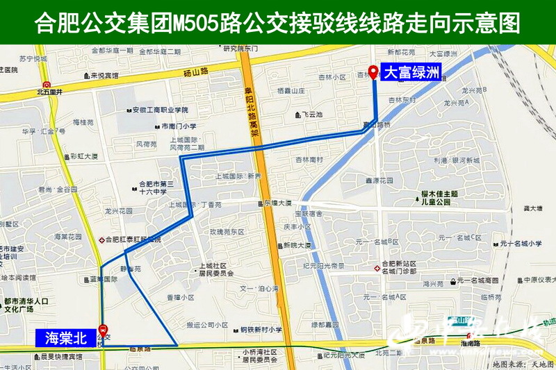 M505路公交停靠站点:大富绿洲、固嘉路口、固阳路口、利辛路、三十六中、海棠北、利辛路、固辛路口、固阳路口、大富绿洲。