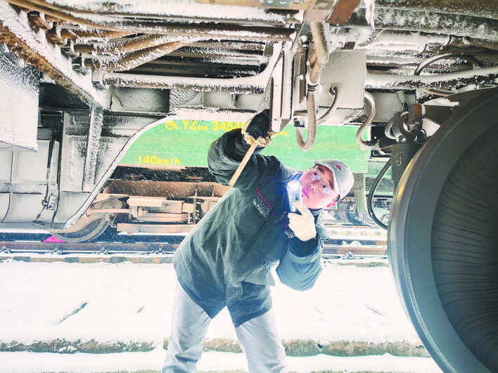“伙计们,雪下得太大了,天太冷,容易造成列车漏泄量超限,试风作业一定要仔细查看。”12月18日凌晨6时许,合肥地区气温骤降,寒风夹杂着大片的雪花漫天飞舞。铁路上海局集团公司合肥车辆段客车整备场内却一派繁忙,K8415次列车即将出库上线运行,作业人员正在紧张地进行最后的试风作业,确保旅客列车“健康”出库。