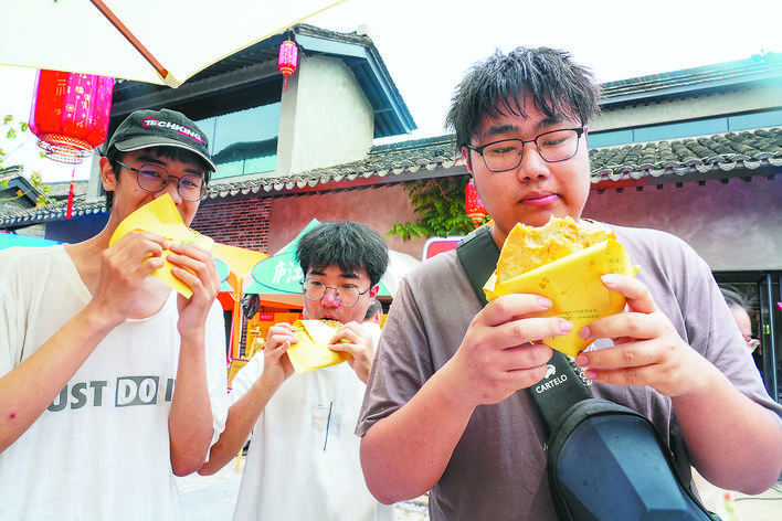 市民在磨滩大街品尝美食