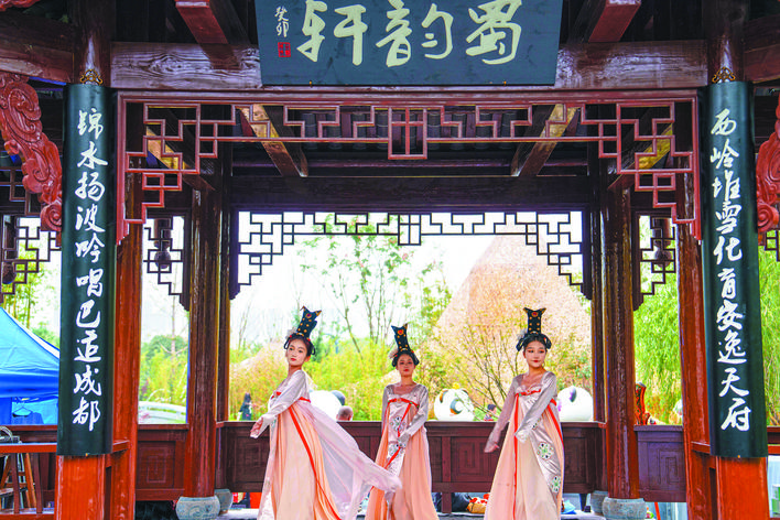 园博园成都园,演员正在表演传统舞蹈 李福凯 王浩 王牌 摄