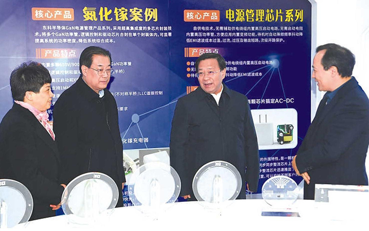1月10日,省委书记韩俊在位于马鞍山市经开区的东科半导体(安徽)股份有限公司,听取企业生产经营情况介绍。(记者 杨 竹 摄)