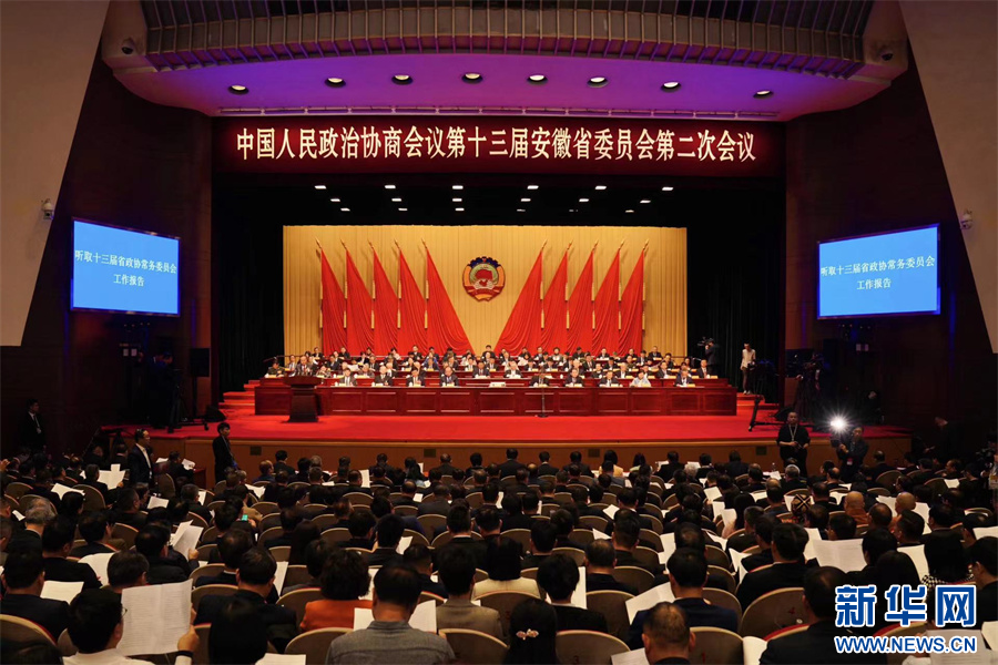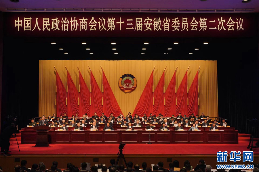 1月22日上午,安徽省政协十三届二次会议在安徽大剧院隆重开幕。新华网发(蔡笑东 摄)