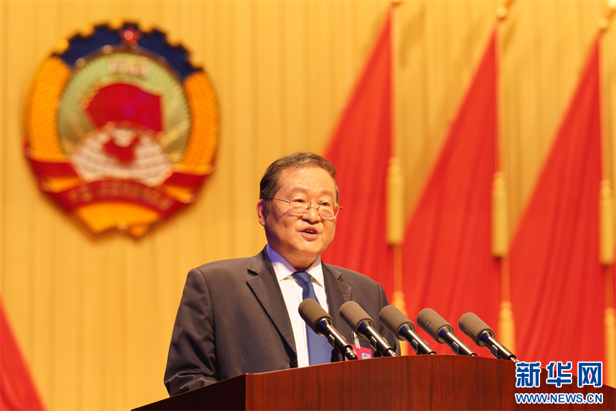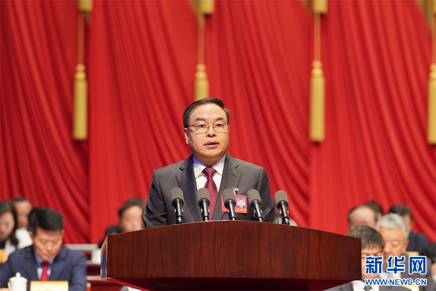 1月22日上午,安徽省政协十三届二次会议在安徽大剧院隆重开幕。安徽省政协副主席郑永飞作政协第十三届安徽省委员会常务委员会关于十三届一次会议以来提案工作情况的报告。新华网发(蔡笑东 摄)