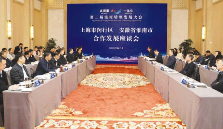 第二届淮南转型发展大会上,上海市闵行区与淮南市合作交流。