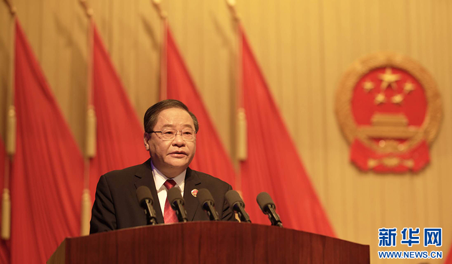 安徽省高级人民法院院长田云鹏作安徽省高级人民法院工作报告。新华网发(蔡笑东 摄)