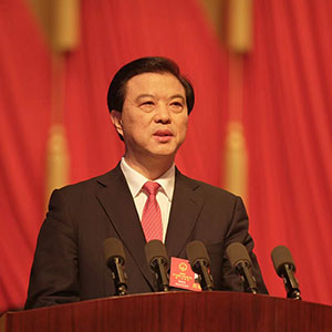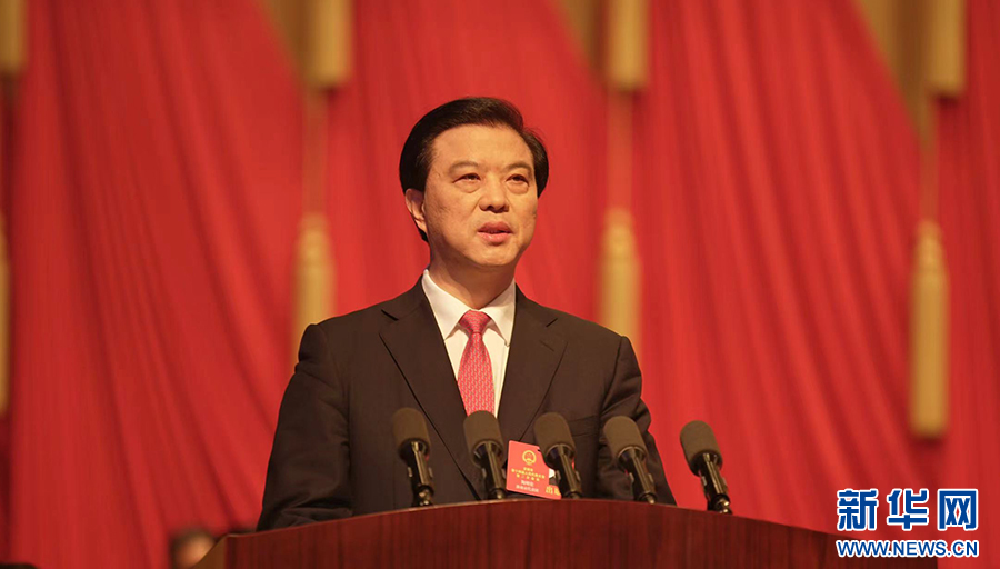 安徽省人大常委会副主任陶明伦作安徽省人大常委会工作报告。新华网发(蔡笑东 摄)