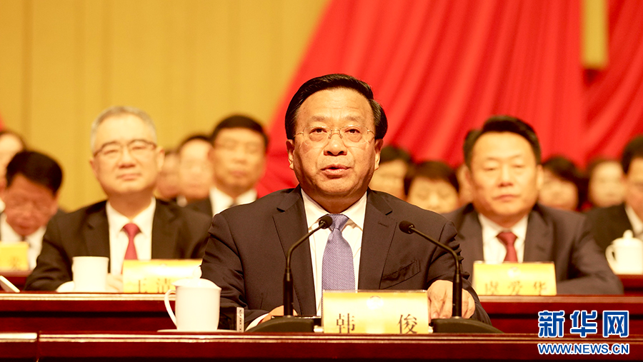 1月25日下午,安徽省政协十三届二次会议在安徽大剧院胜利闭幕,中共安徽省委书记韩俊出席会议并讲话。新华网发(蔡笑东 摄)