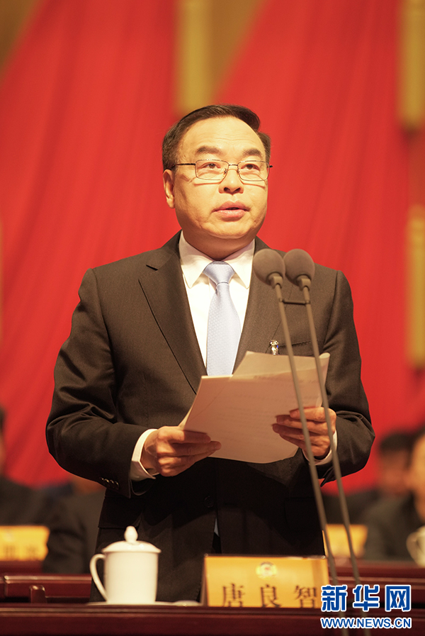 1月25日下午,安徽省政协十三届二次会议在安徽大剧院胜利闭幕,安徽省政协主席唐良智主持大会并致闭幕词。新华网发(蔡笑东 摄)