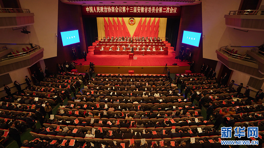 1月25日下午,安徽省政协十三届二次会议圆满完成各项议程,在安徽大剧院胜利闭幕。新华网发(蔡笑东 摄)