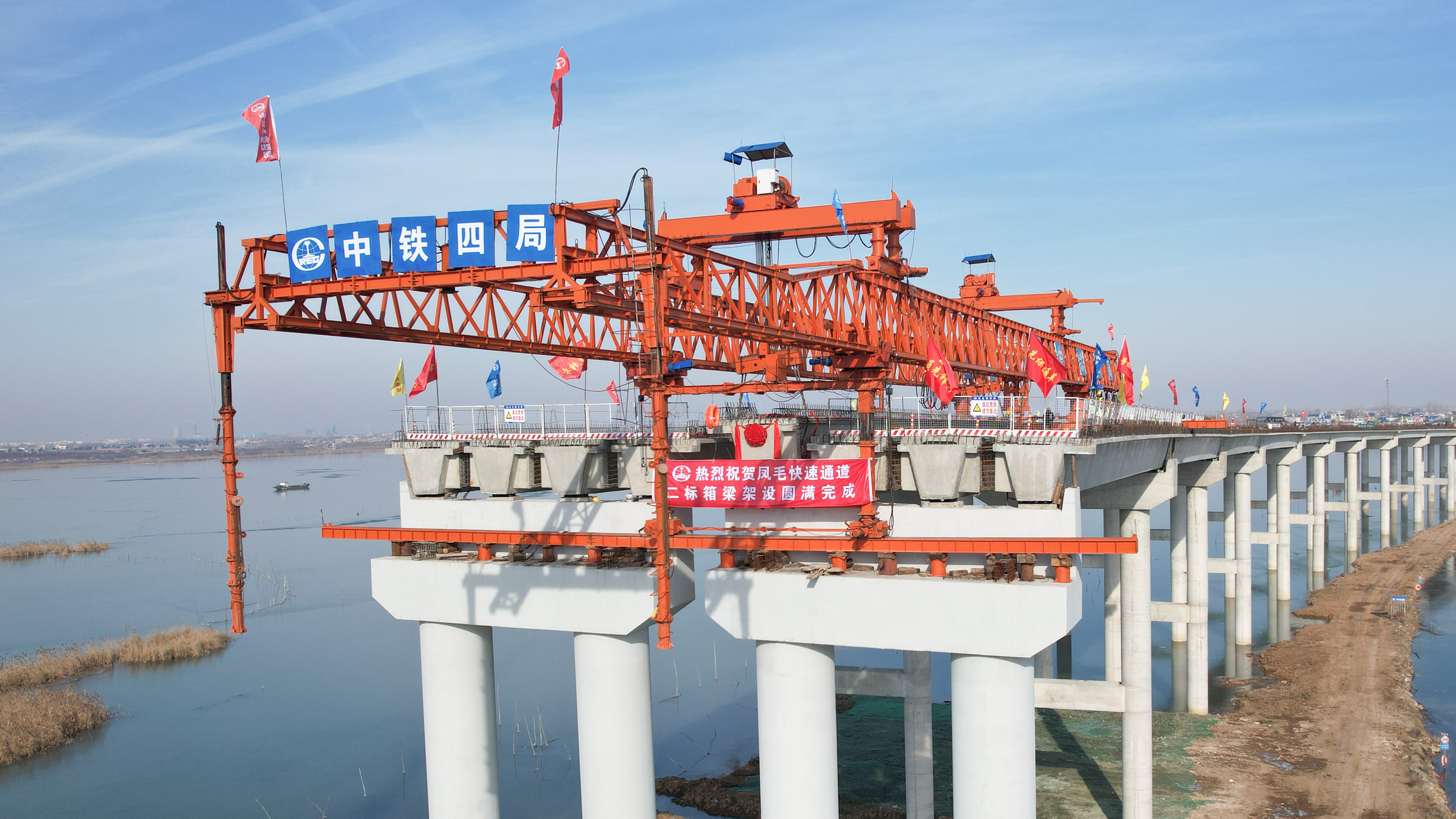 近日,由中铁四局七分公司承建的凤(台)毛(集)快速通道二标段西淝河特大桥137跨左幅4#箱梁稳稳落下,这标志着该项工程比计划工期提前45天完成全部1096片箱梁架设任务,为凤毛快速通道实现提前通车目标奠定了坚实的基础。