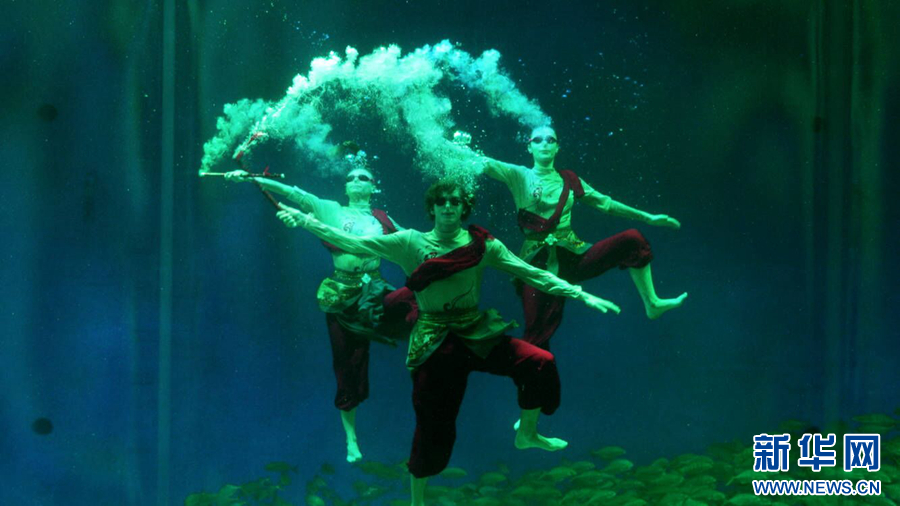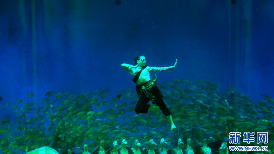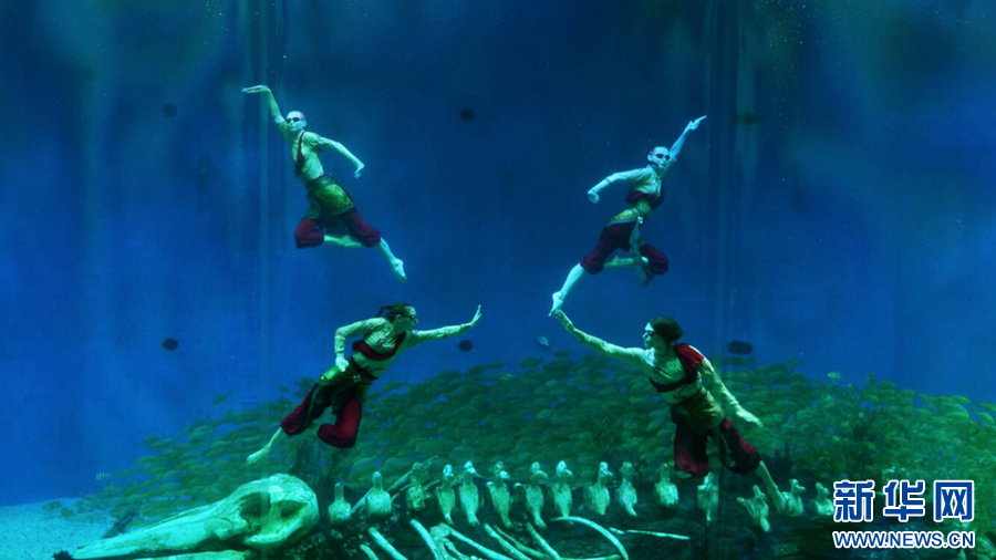 群鱼游弋相伴,舞者翩翩起舞。日前,合肥海洋世界一场水下“飞天”舞蹈表演精彩上演。