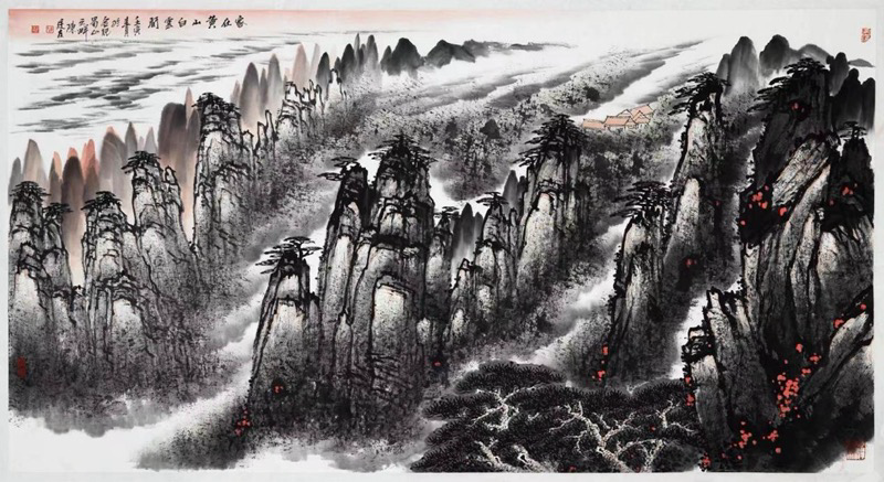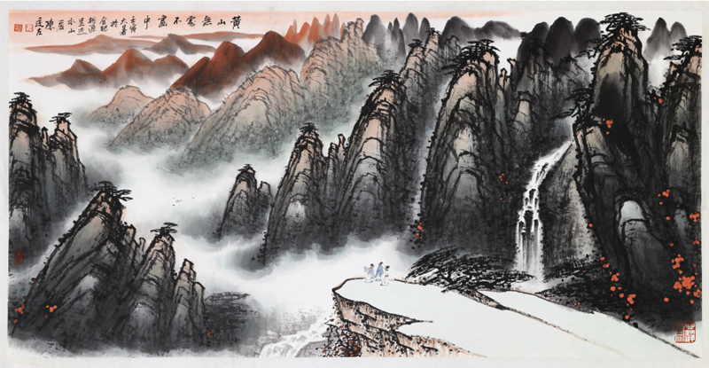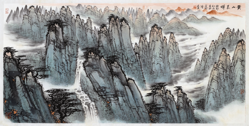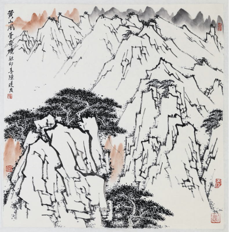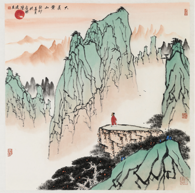 陈廷友笔下的黄山,着眼于表现黄山宏大幽远的整体美,变幻丰富的动态美,营造出高逸绝尘的美感。