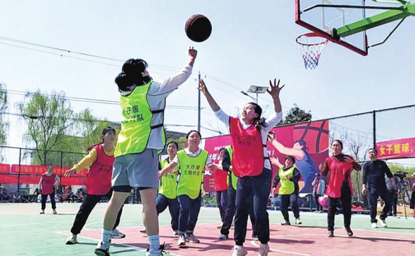 随着裁判员的一声哨响,篮球赛正式开赛,按照抽签顺序,首场由陈庄村红高粱队与王桥居蔬菜鲜鲜队对决。赛场上你来我往,一个球你争我夺,精彩不断。