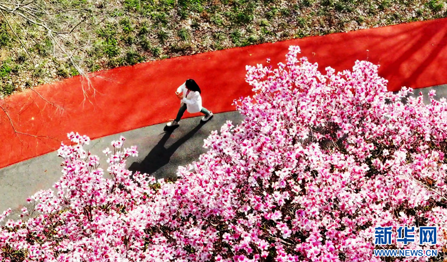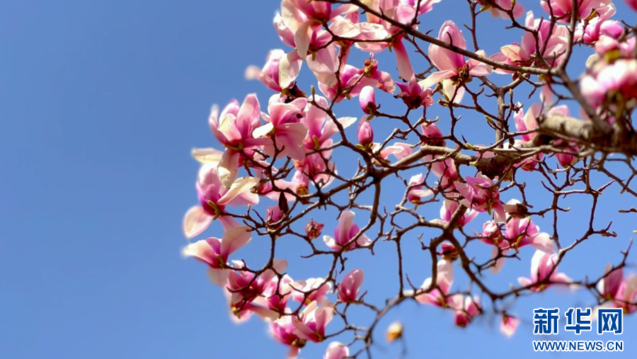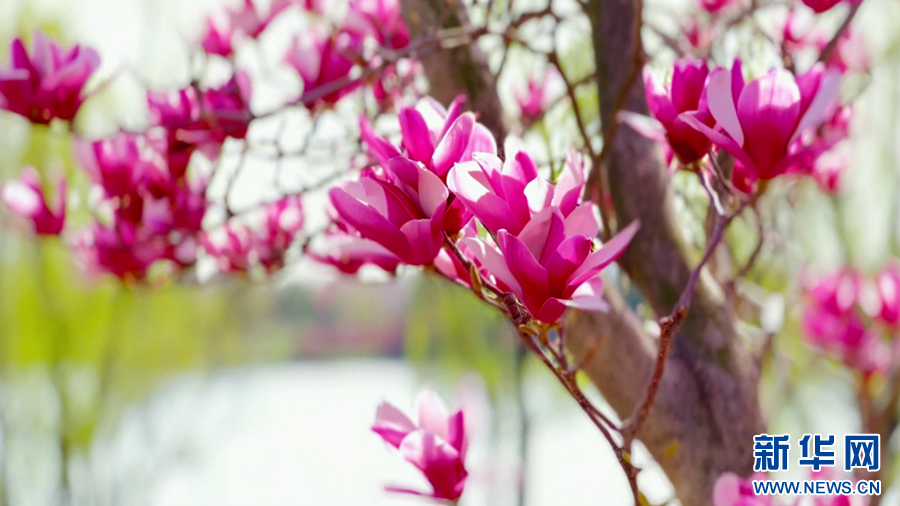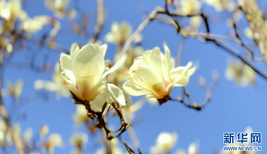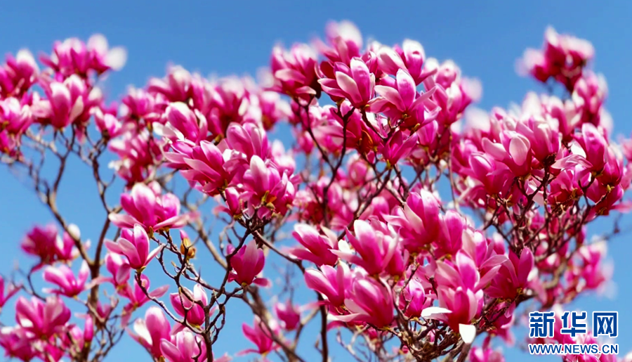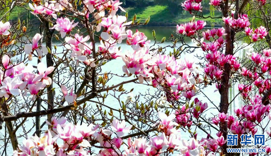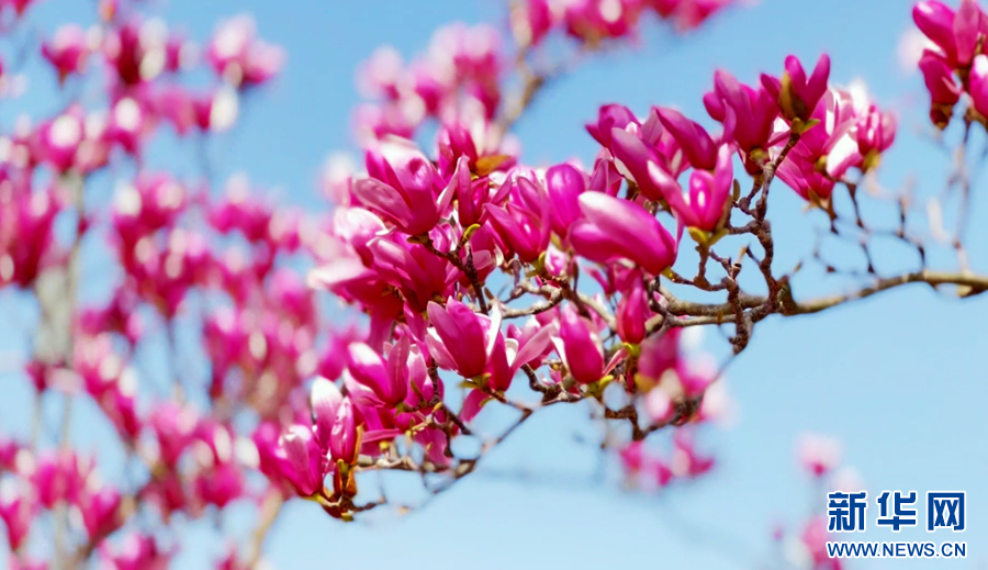 近日,安徽省颍上县五里湖湿地公园的玉兰花迎来盛花期。团团簇簇的花朵缀满枝头随风摇曳,满树芬芳,美不胜收。新华网发(徐红梅 摄)