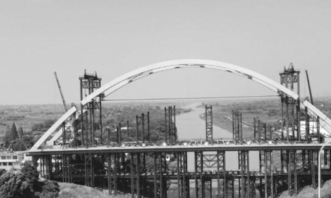 姥山大桥路线全长1.81公里,公路等级为三级公路,设计速度为40公里/小时。目前,姥山大桥主桥钢梁、主拱安装已全部完成,将进行水中钢管桩的拔除工作。