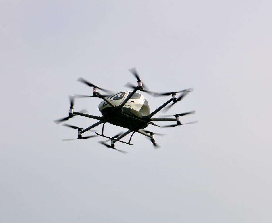 亿航智能无人驾驶载人航空器演示飞行。