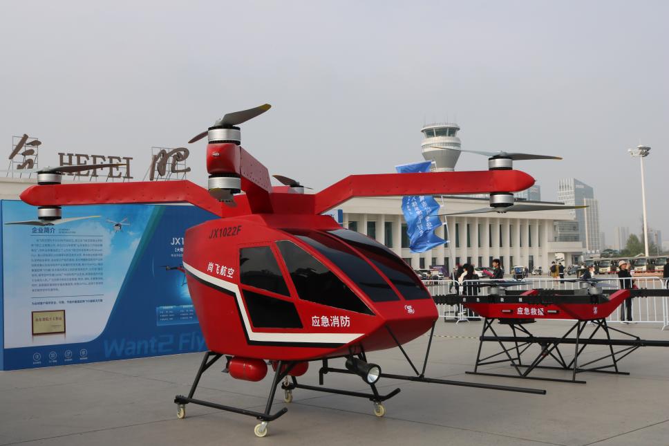 现场展示的亿航智能无人驾驶载人航空器。