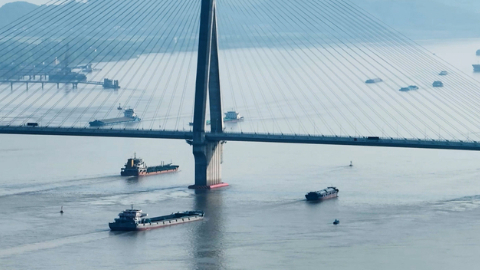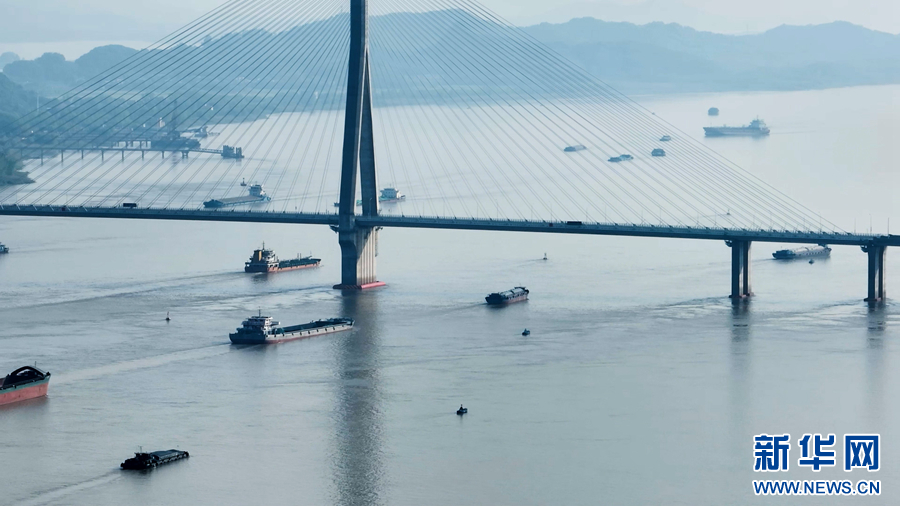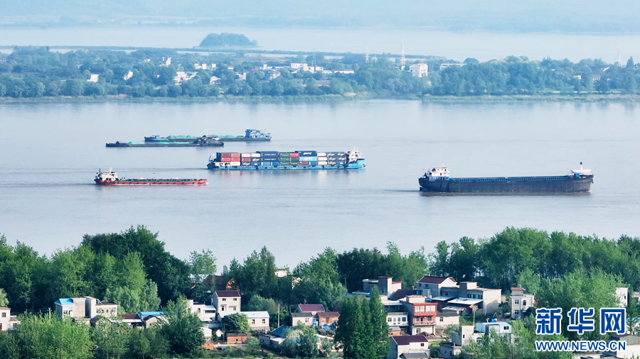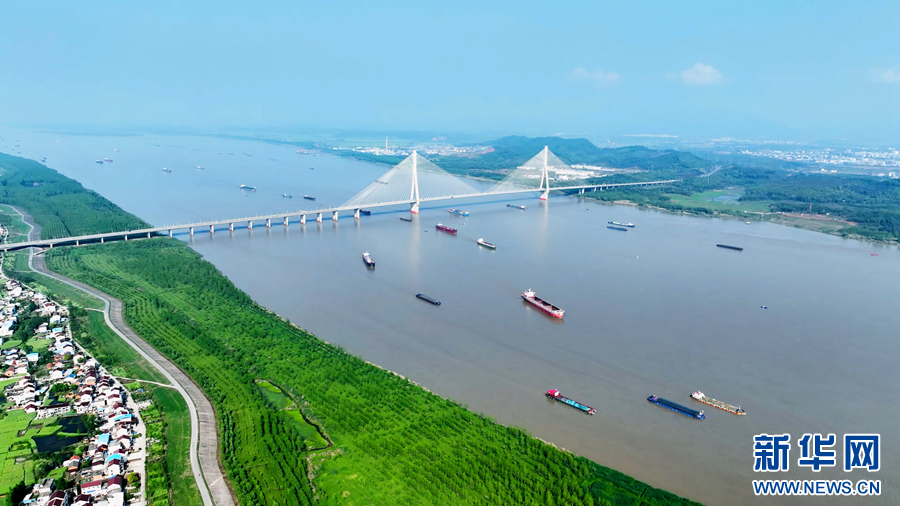 初夏时节,航拍镜头下的长江同马大堤望江段,江面空阔晴朗,江水浩荡奔流,滩涂绿意浓浓,一幅水清、岸绿、景美的生态画面尽收眼底。