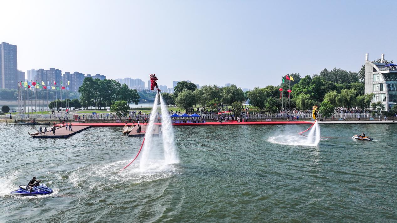 为促进体育、商务、文旅等多业态融合发展,在比赛现场,大赛组委会通过不同区域和场景主题,精心设置了四大互动体验区:充满趣味的旱地龙舟、手工包粽子、趣味投壶、汉服国风秀等民俗体验区;优雅的茶艺表演、悠扬的古筝表演、激昂的架子鼓表演等表演互动区;六安瓜片、皖西白鹅、蒿子锅巴、裕安脆桃等六安农特展示区;啤酒、龙虾、大窑等美食品鉴区。这不仅是一场精彩绝伦的水上视觉盛宴,更是一次“体育+”的深度完美融合。观众们观看了比赛,畅玩了游戏,品尝了美味,还将六安特色味道带回家。(吴允刚)