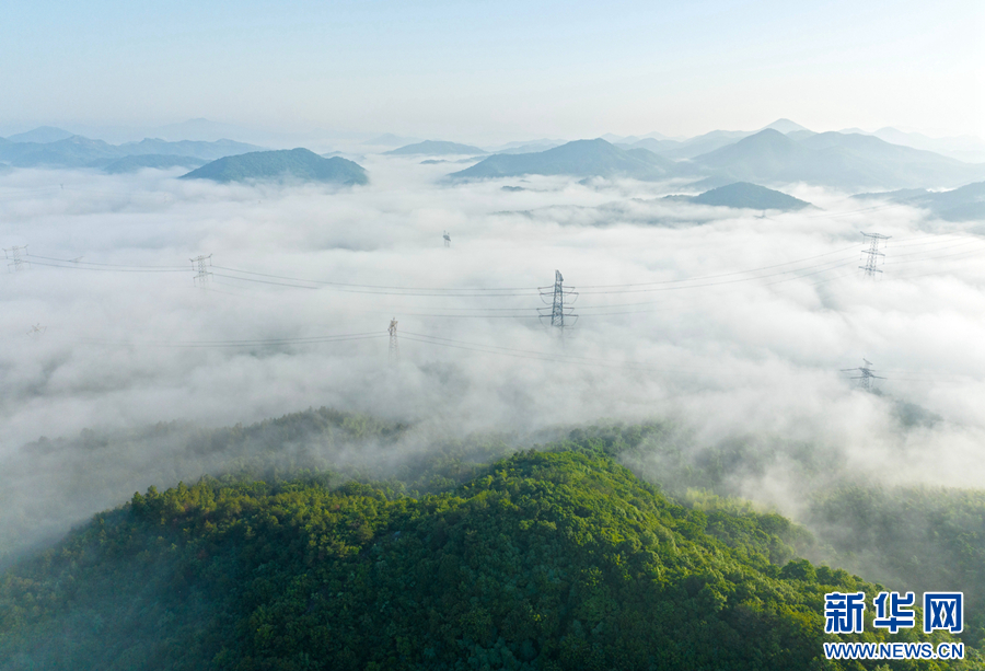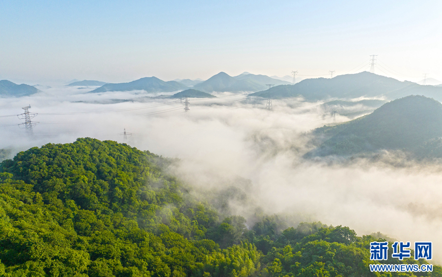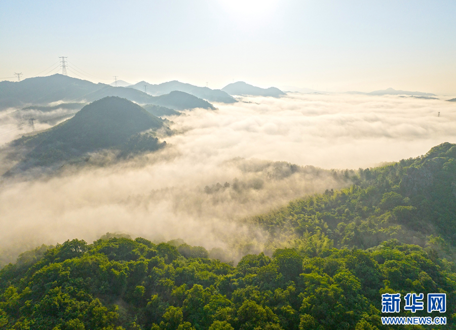 5月28日清晨,雨后天晴,位于安徽省芜湖市繁昌区境内的马仁山出现云海景观,飘逸的云海在山岭间翻腾,宛若仙境,蔚为壮观。新华网发(章平周 摄)