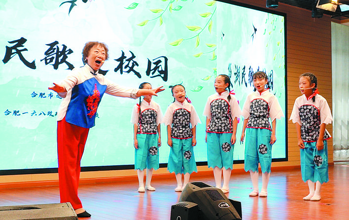 “巢湖啊好哎,依吔,好呀好风光……”伴随着一首《巢湖好》,“巢湖民歌进校园”活动拉开帷幕。6月18日,由合肥市文化馆组织打造的“巢湖民歌进校园”活动走进合肥一六八玫瑰园学校东校,来自巢湖民歌的非遗传承人们,与学生们共同唱响民歌经典。