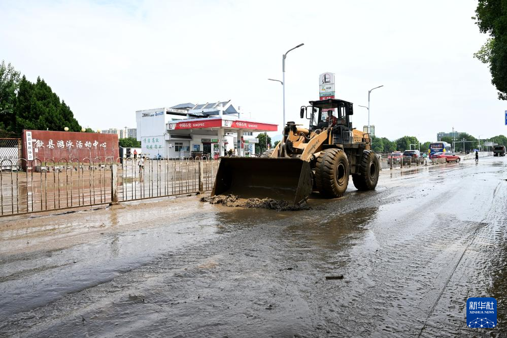 6月21日,在安徽省黄山市歙县,工作人员在清理淤泥。