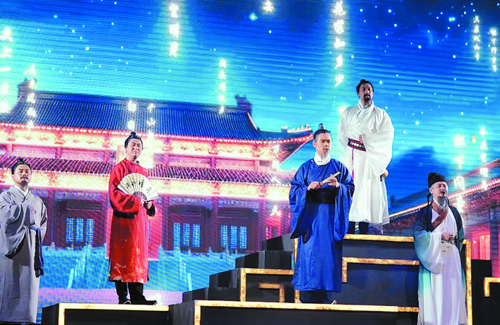 据了解,沉浸式穿越儿童剧《诗润千年》主要讲述一名活泼好动的小男孩名叫布备书,他总认为学习有压力,背书没动力,一直觉得不看书,不背书,照样可以学好中华诗词。梦中的布备书穿越回了古代,遇见了诗仙、诗圣、诗佛、诗魔等,同游诗词瀚海,领略诗词真滴,感受中华优秀传统文化博大精深。现场小朋友可以参与互动,共同背诵千古名篇,畅游在中国古典诗词文化的海洋里。