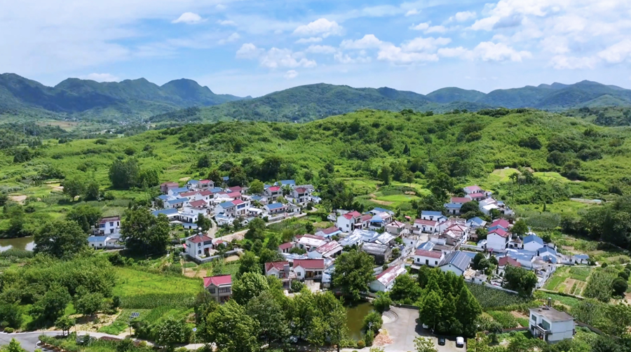 盛夏时节,安徽省铜陵市义安区的乡村,风光旖旎、生机勃勃,青山、绿树、田园、民居构成一幅秀美的生态画卷。