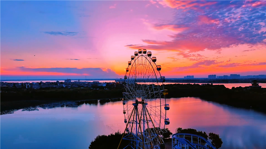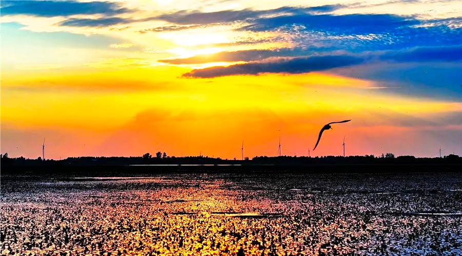 盛夏时节,安徽省颍上县久雨初晴,缤纷的晚霞与浩渺的湖面相映成辉,镜头里每一帧都是美景。