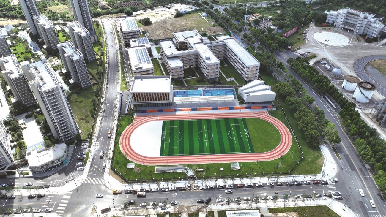 同期投入使用的还有肥西经开区中心学校东校区和肥西县上派镇花木城小学。其中,肥西经开区中心学校东校区位于丹霞路与青龙潭路交口东北侧。该项目总建筑面积约为26825平方米,规划建设规模48个班,可提供学位2160个,项目规划2栋教学楼、1栋多功能报告厅、1栋综合楼(含食堂)及风雨操场、200米运动场、室外篮球羽毛球等运动场地等配套设施。截至目前,该校园林绿化、楼层卫生等基本完工,正在进行各功能室内部装修和弱电工程,预计所有工程将在8月上旬完成交付。