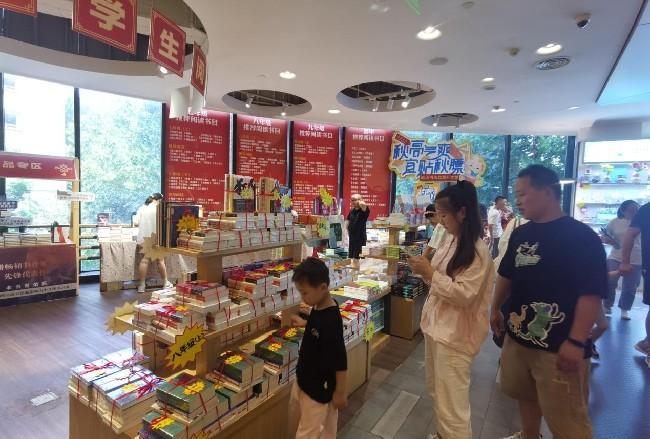 9月1日,新华书店安徽图书城店内熙熙攘攘,众多家长携子女穿梭于书架之间,细心挑选开学所需的图书与文具等物品。