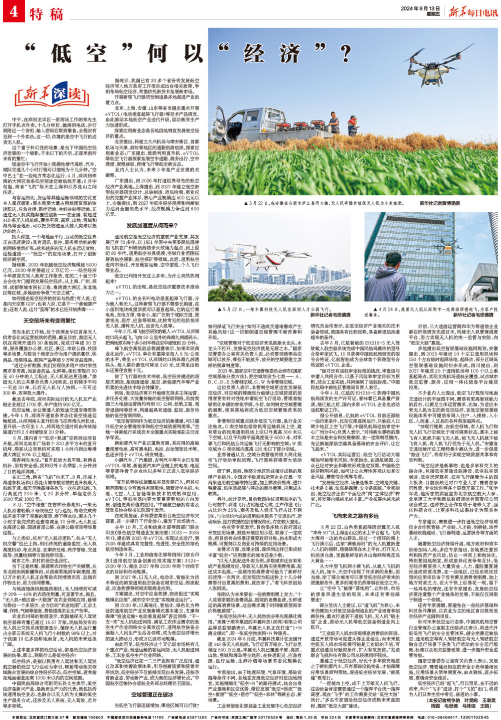 抬头仰望,一个与地面平行、互动的低空世界正在迅速建设:具有通讯、监控、服务等功能的智能网络悄然扩张;越来越多的无人机在运送货物、巡检道路……“低空+”的应用场景,打开了创新经济新空间。