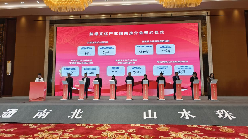 推介会上播放了蚌埠市文化宣传片,有10个文化产业项目进行了现场路演,总投资额20多亿元的15个重点合作项目现场签约。泗州戏、花鼓灯舞蹈等非遗文化节目,全方位、多角度展示了蚌埠的文化名片。