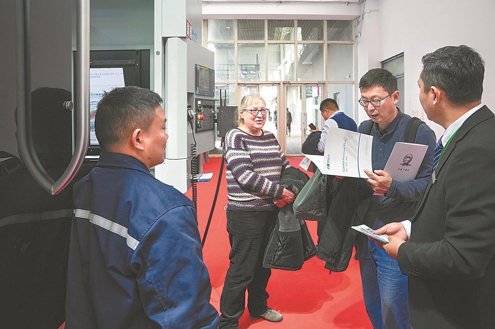 11月27日,安徽铭钜智能装备有限公司的数控加工装备吸引了外国客商驻足了解。
