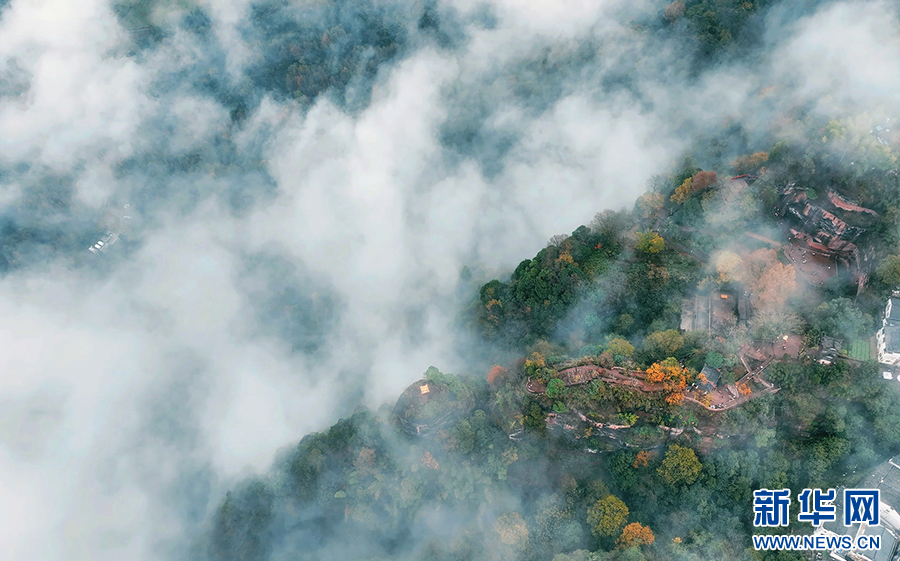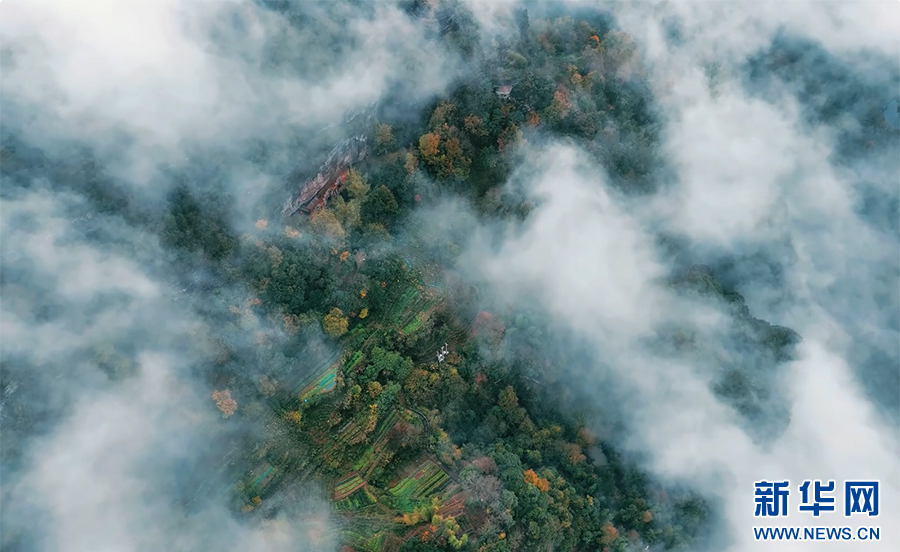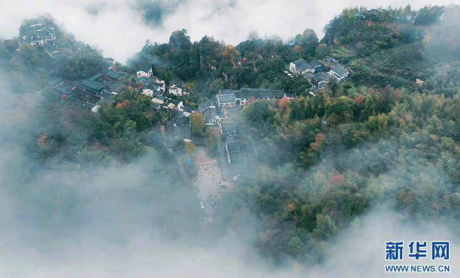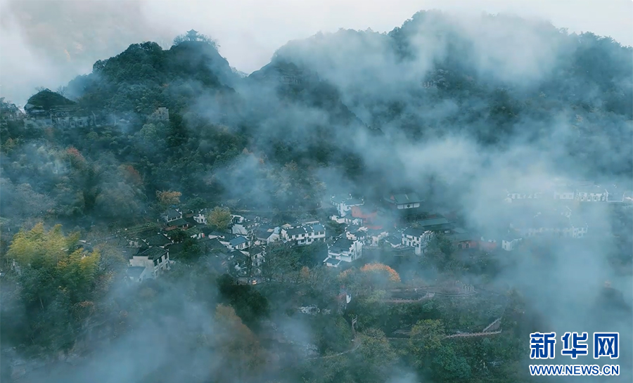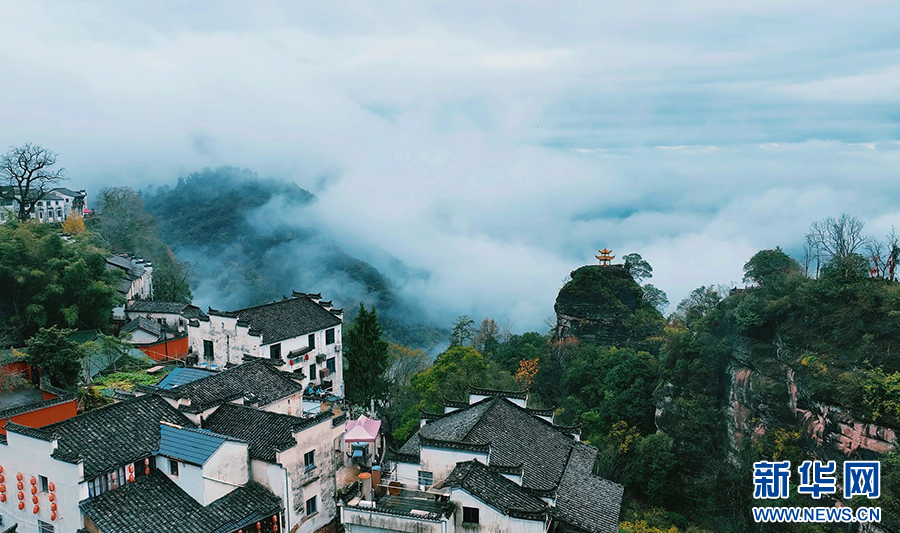 仲冬时节,位于安徽省休宁县的齐云山景区迎来云海景观。轻雾似纱在山间升腾变幻,群峰、民居若隐若现,宛若画卷。新华网发(陶如 倪正 摄)
