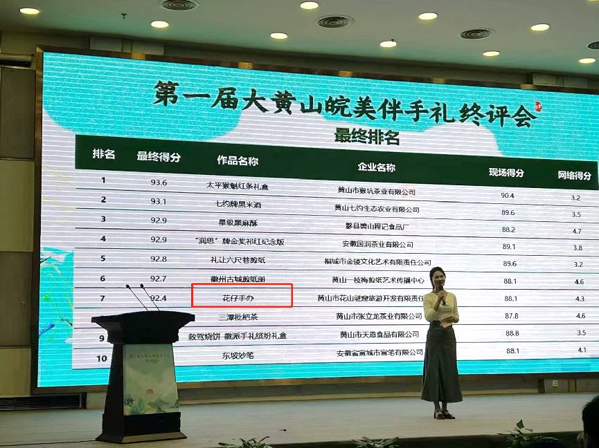 近期,黄山市消费者权益保护委员会公布了《第一届大黄山皖美伴手礼终评会评选结果》。本次评选会共吸引大黄山四市共87家企业的113款伴手礼产品积极申报。经过企业资质信用核查、专家初评及网络票选等环节,共有63款产品脱颖而出,进入终评会环节。花山世界·花山谜窟主题园区的“花仔手办”凭借其出色的产品力,在众多参赛作品中脱颖而出,最终荣获总评分第七名的优异成绩,成功获评“第一届大黄山皖美特色伴手礼”。