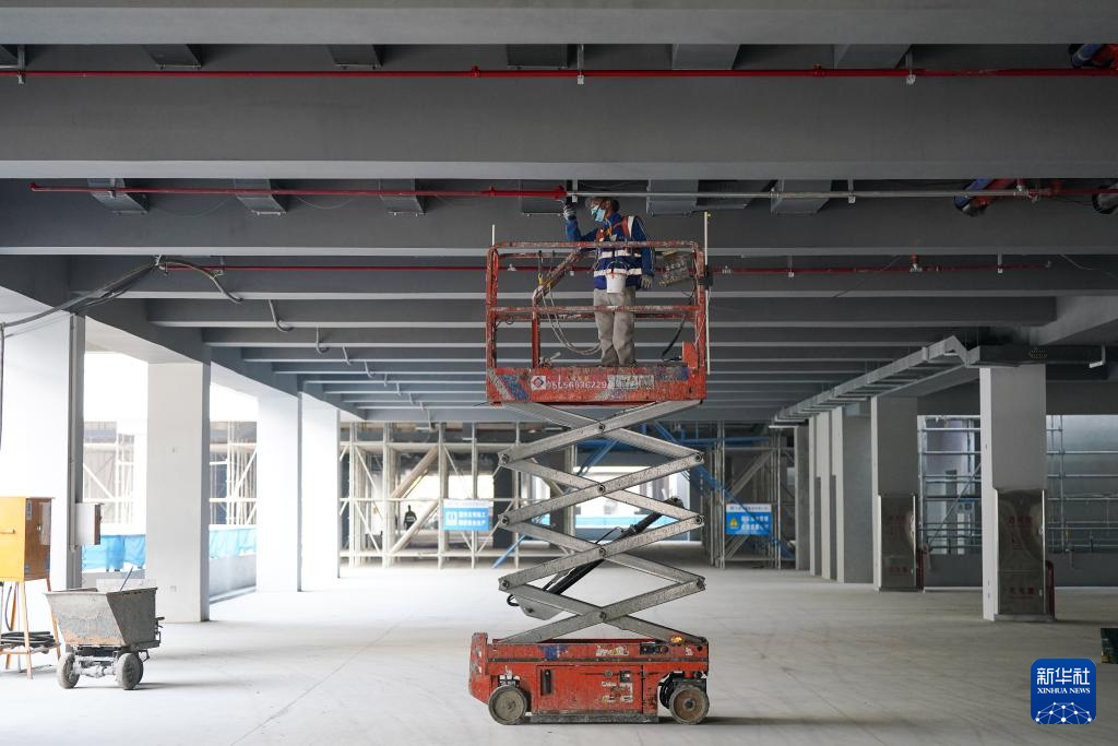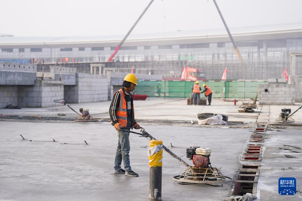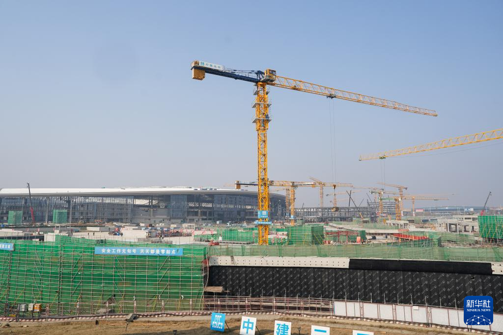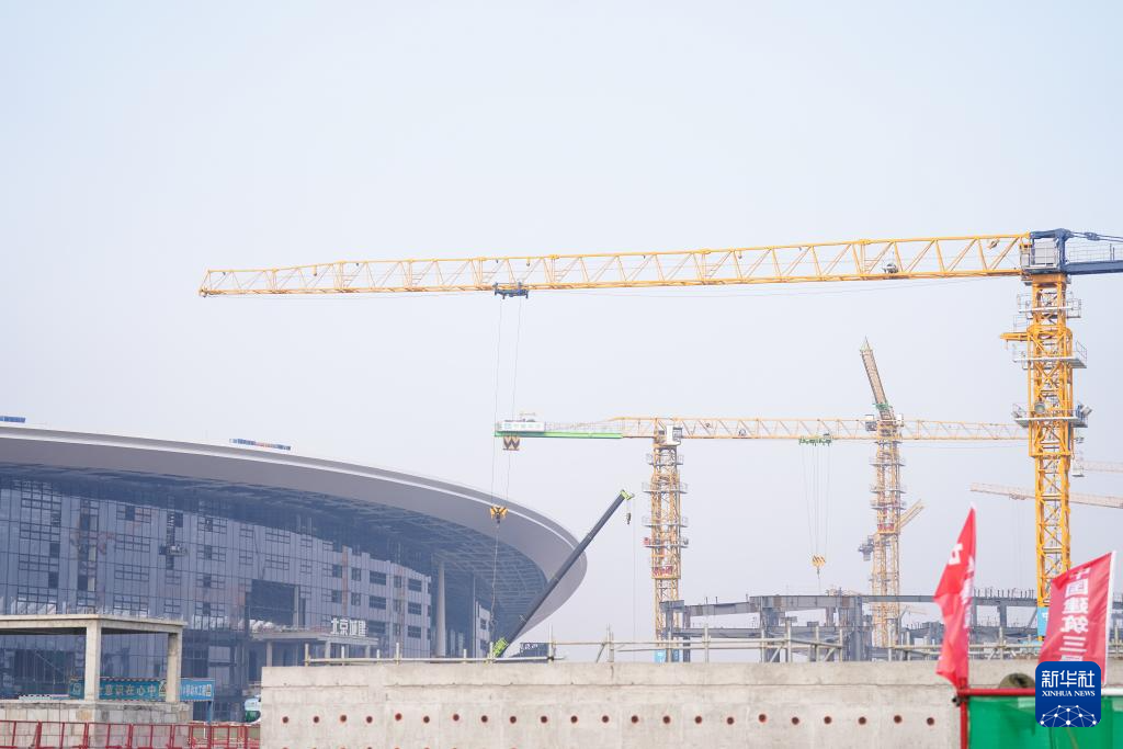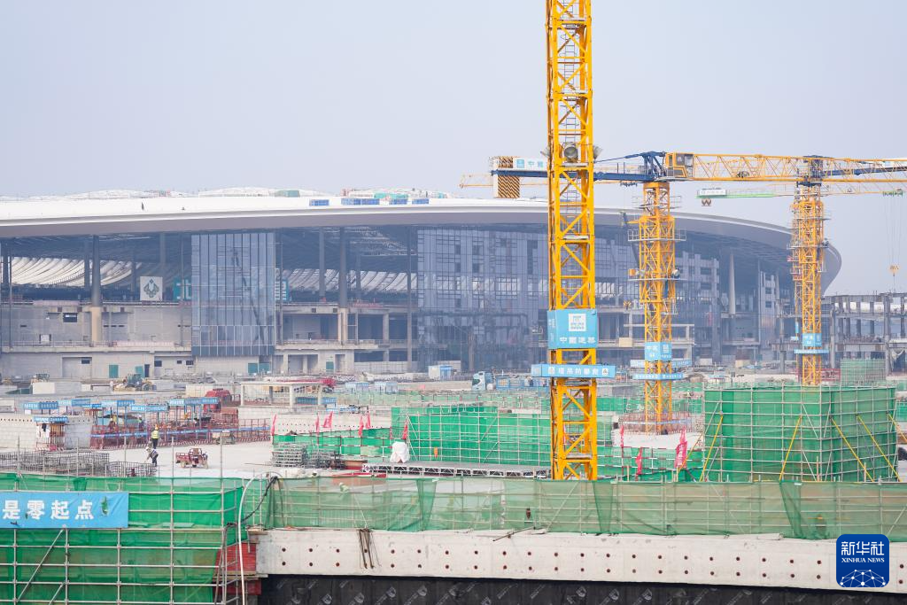 12月27日,中建三局的工作人员在合肥新桥国际机场综合交通中心施工。
