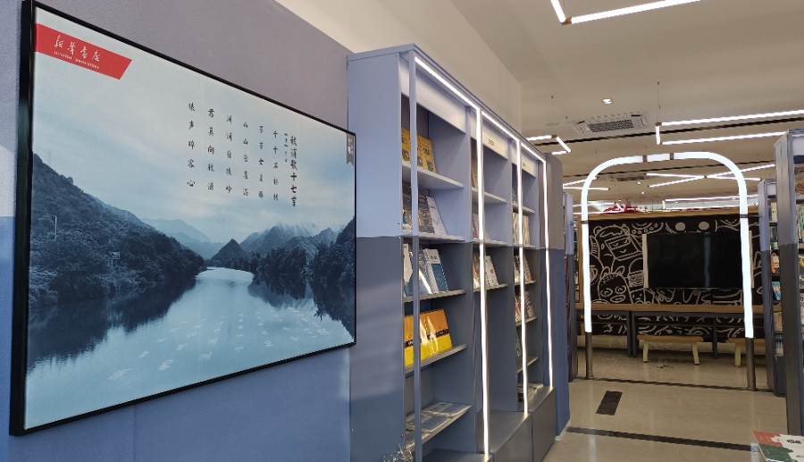 池州新华书店长江路店以“千载诗人地,悠久古池州”为主题,从书店二楼入口“池州老照片”到顶层红色的“中国龙形灯”,紧密融合《望九华山》《题穿山洞》《杏花村》等众多文人雅士在池州留下的诗篇,让读者在书店体验“诗中之城”的浓厚文化氛围。开业当天,门店还组织开展了“非遗系列活动之新年拓福”等互动体验活动。