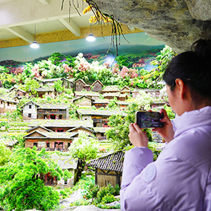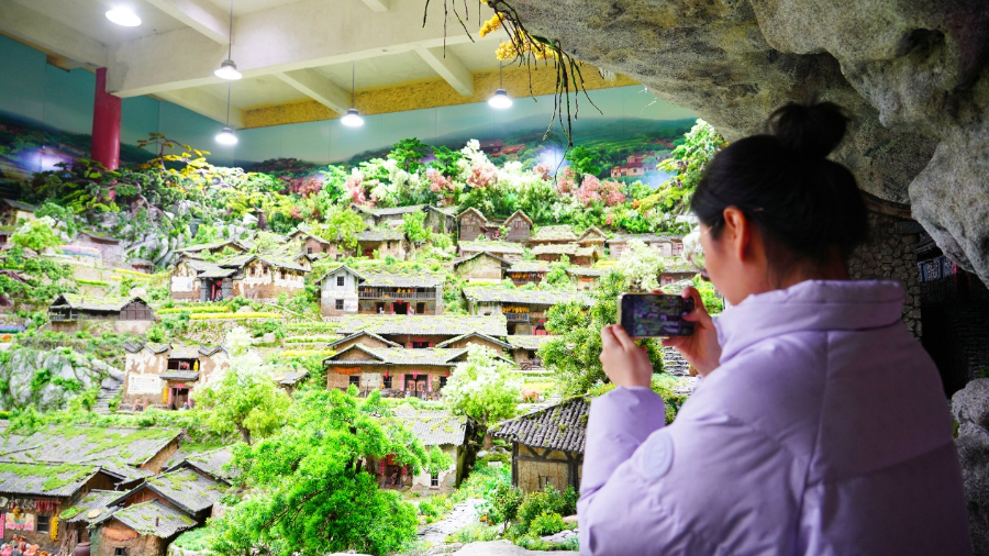 游客在园区内的中国民居场景馆参观、拍照。