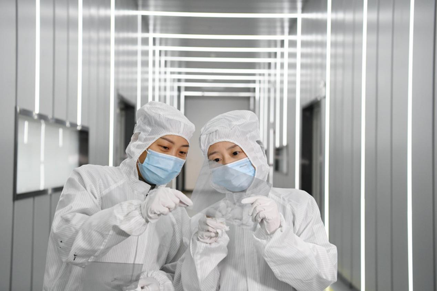在位于安徽合肥的东超科技工厂,技术人员在检查负折射平板透镜原材料的品质。新华社记者 张端 摄