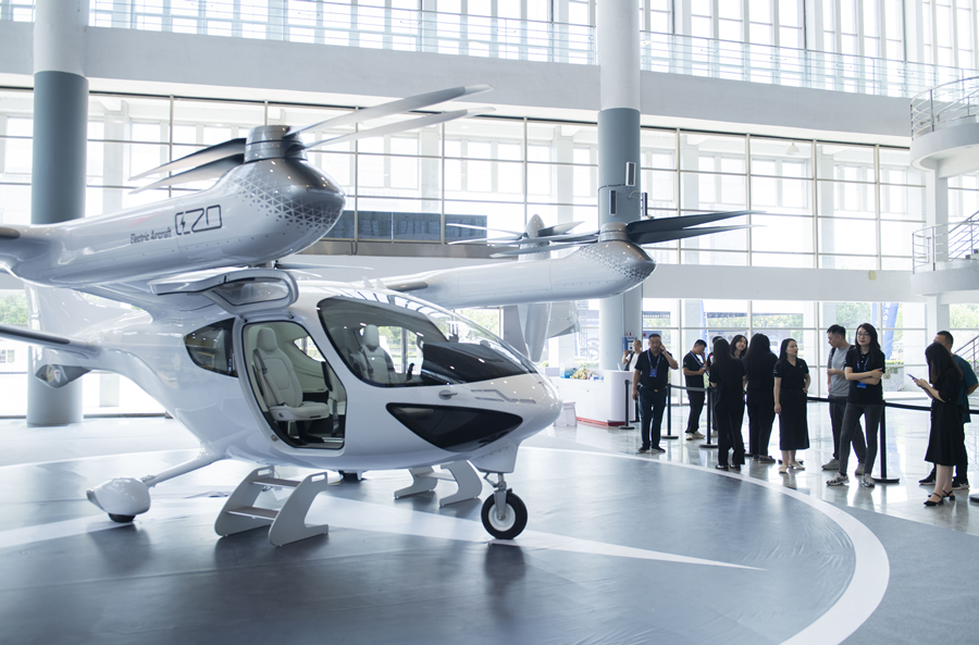 观众在2024低空经济发展大会创新成果展区了解一款电动垂直起降飞行器。新华社记者 傅天 摄