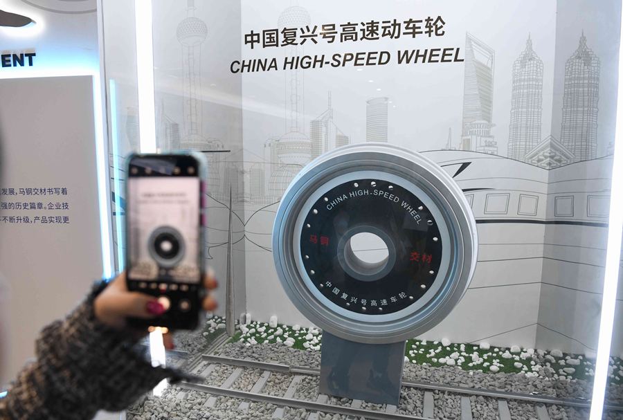 在宝武集团马钢轨交材料科技股份有限公司智慧中心拍摄的车轮展品。新华社记者 刘军喜 摄