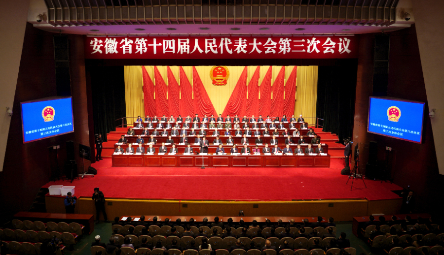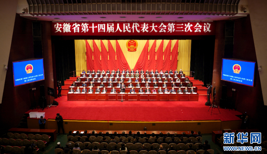 安徽省第十四届人民代表大会第三次会议在安徽大剧院胜利闭幕。新华网发(廖宇翔 摄)